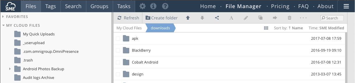 When in the File Manager view, in the right hand side there is a 'filter' search box in the top right hand side of the screen. This is a quick way to filter search for items that have been loaded in the tree. It is not meant to be a comprehensive search, rather a shortcut to quickly finding something within a branch of the hierarchical file tree.