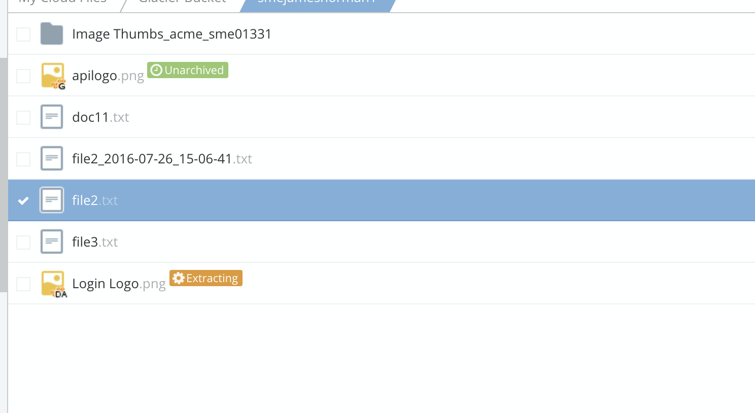 In either case Access Anywhere will register a request with S3 to have the file restored. While the file is being restored, it will be marked in the File Manager with a gear symbol and the word “Extracting”.
