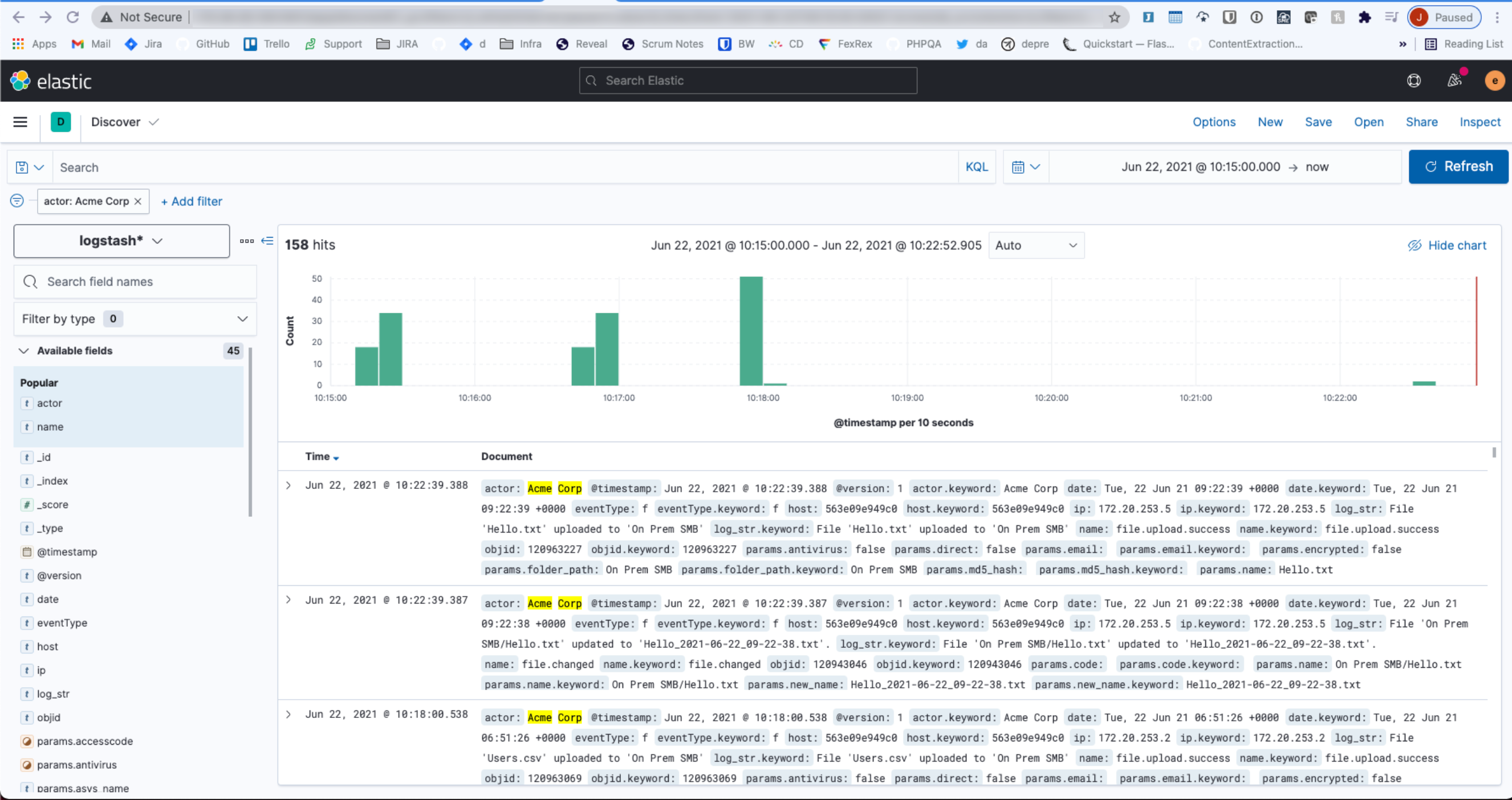 Once configured the Audit Log Stream can integrated into a variety of products that work with Audit log stream, such as an ELK Stack: