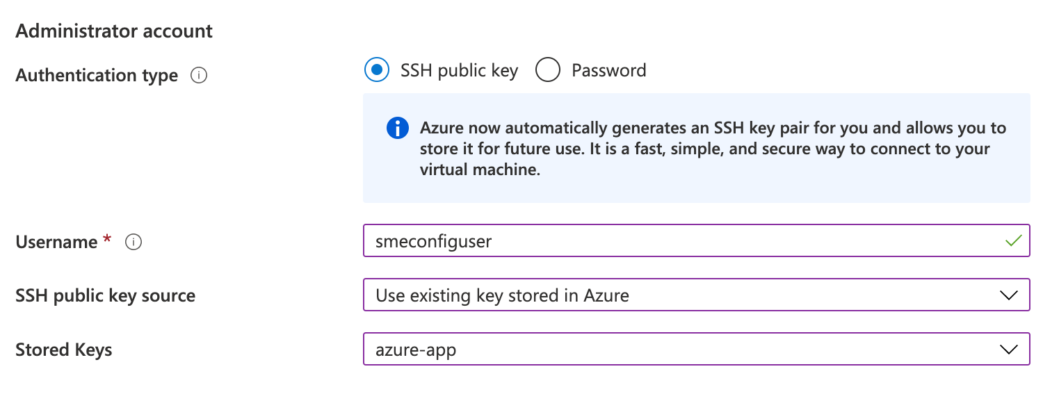 Enter the Username smeconfiguser and either create or use an existing SSH key.