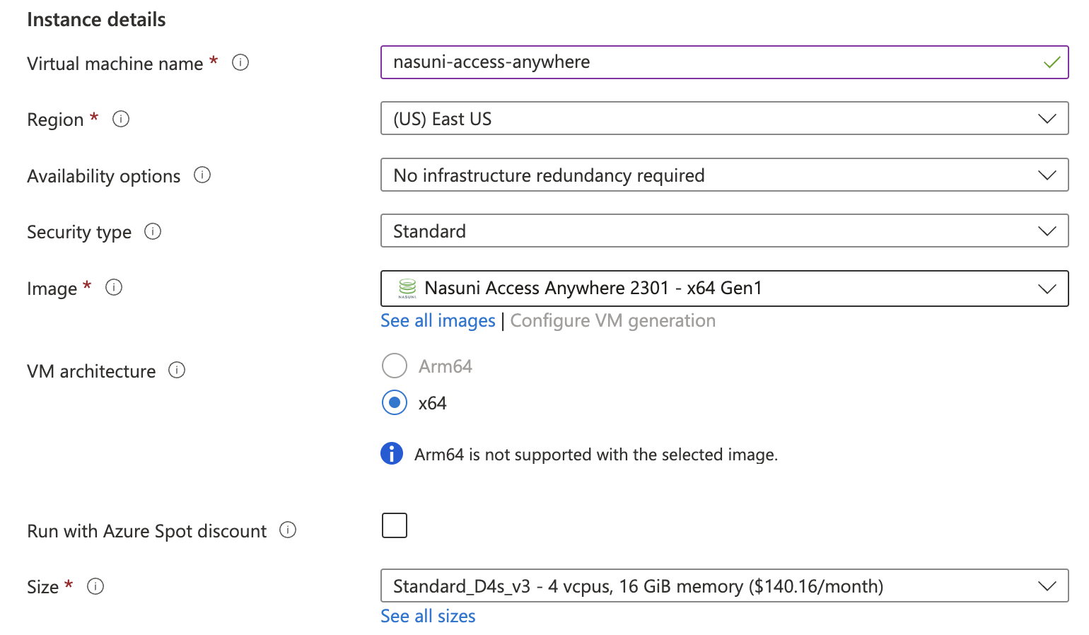 Enter a Virtual Machine Name such as “nasuni-access-anywhere”. It will also be the default hostname.