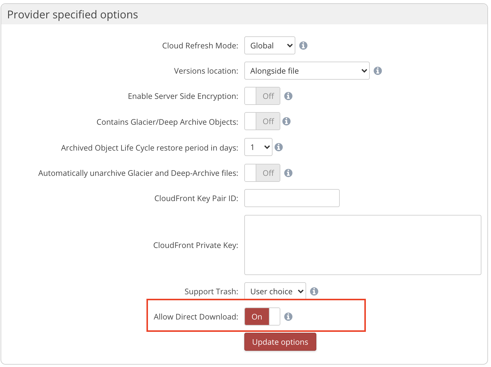Direct Download can be used with the public cloud storage services on this list by all Access Anywhere customers. For private storage services, for example an on-premises Cloudian installation, it is up to the administrator or user who adds the provider to determine whether or not Direct Download should be enabled. Direct Downloads will not work if the storage on which the file to be downloaded is stored is not accessible from the browser or client program that is requesting the download.