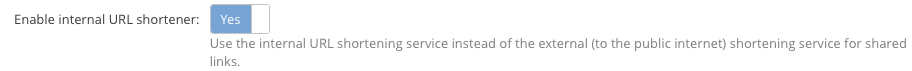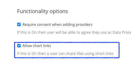 To make short links available the organization administrator sets “Allow links to be shortened” to Yes.
