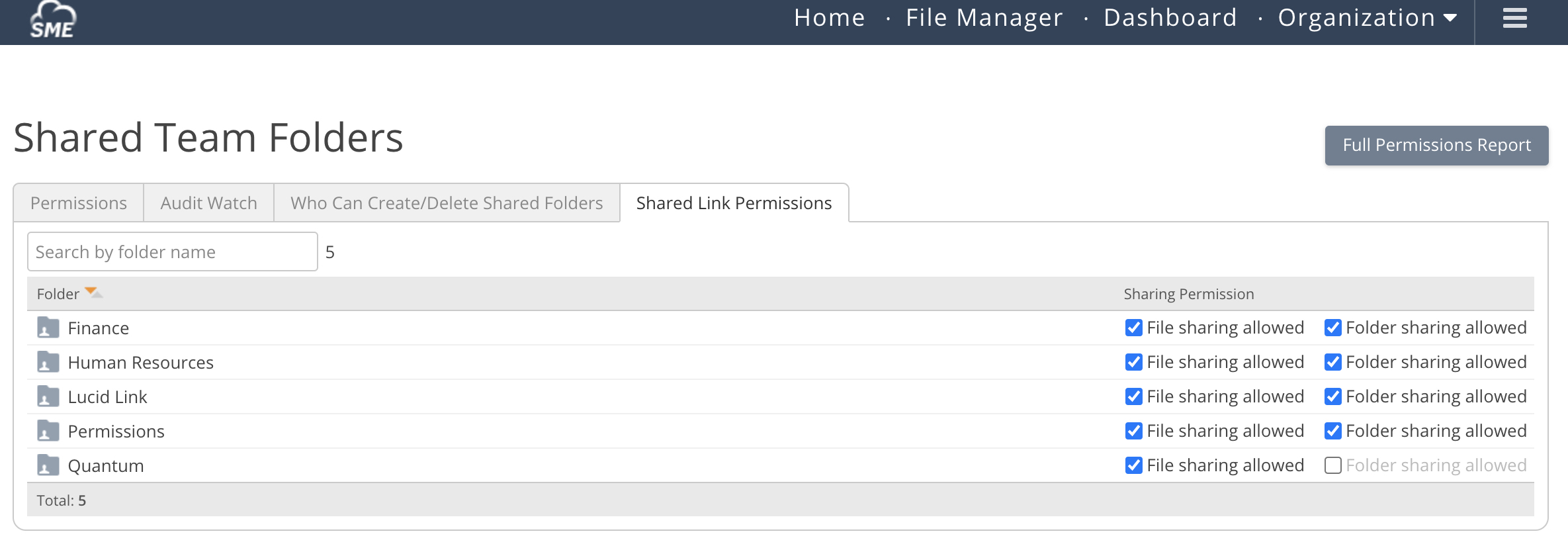 Released in 2106.05, administrators can control whether users are able to create shared links to File or Folders for each Shared Team Folder.