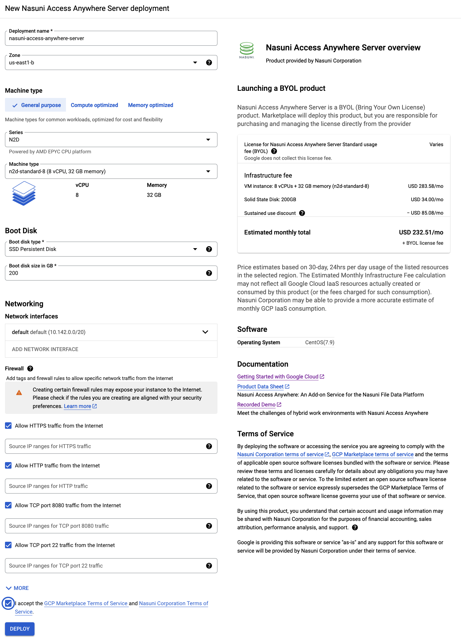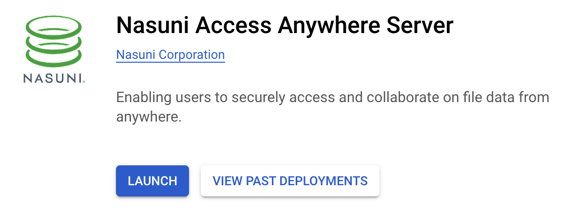 - From the Google Cloud Platform Marketplace click Nasuni Access Anywhere Server.