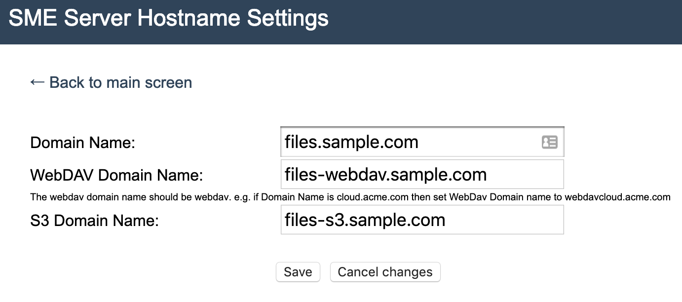 Here you only need to configure the three domain names. Click “Configuration” and then “NAAServer Hostname Settings”.