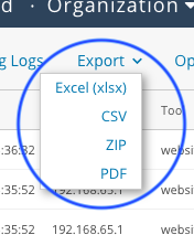 Access these three options from the Export pulldown near the top of the Audit Event Logs page: