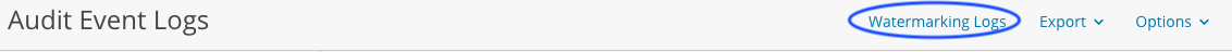 The Access Anywhere provides a Watermarking feature that affixes a random watermark code to downloaded PDF files. You may sometimes want to learn the details of when a watermarked file was downloaded. To do this, click on the Watermarking Logs link near the top of the Audit Event Logs page: