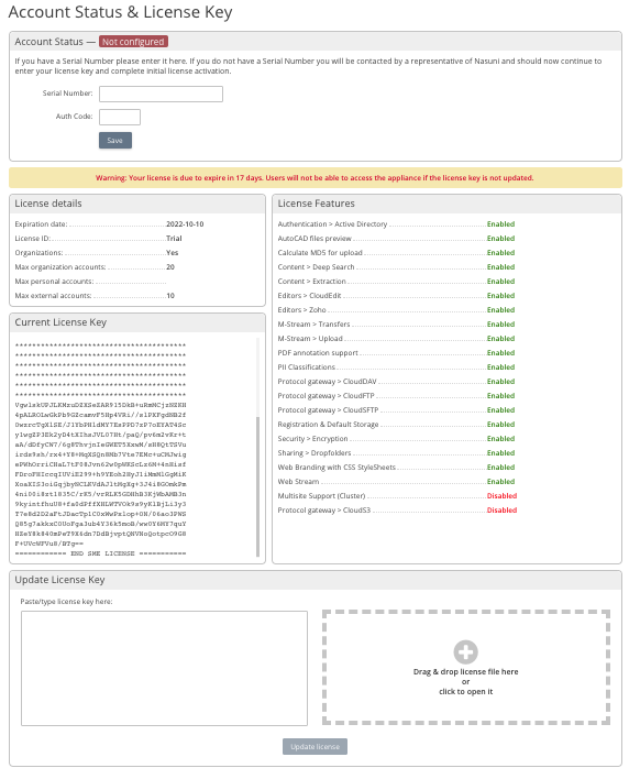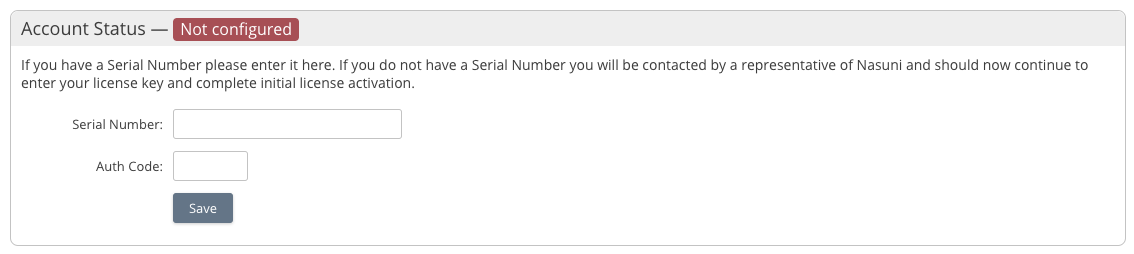 - A Serial Number and the associated Authorization Code (available from your Nasuni account).
