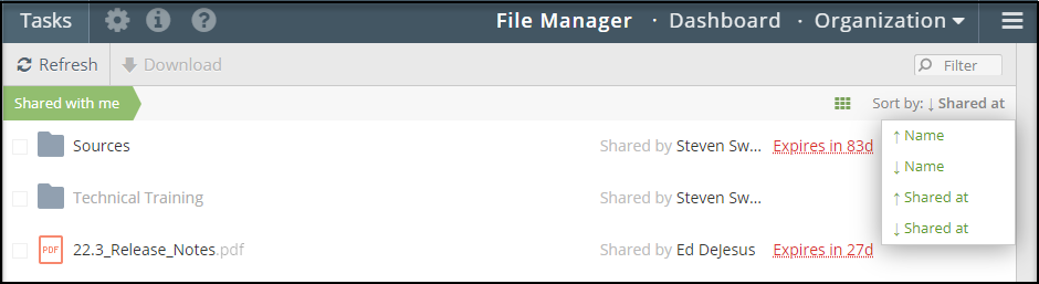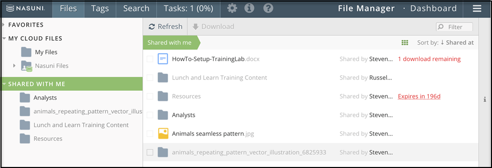 Next to the file name are the Shared by and expires columns. These columns display who shared the file and when the file is no longer accessible.