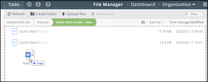 Alternatively, click a folder under Shared With Me and drag and drop a file into the folder’s list.