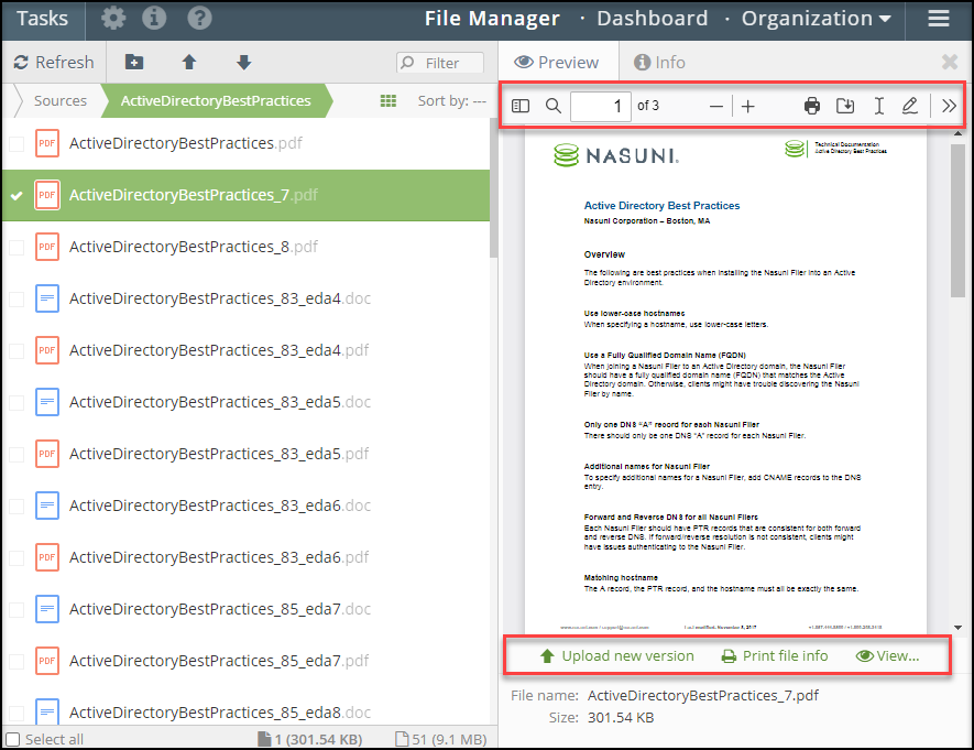 Note: The available file actions are dependent on the file type and if the file is read-only or read-write.